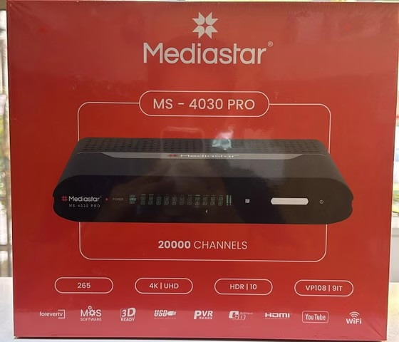 گیرنده مدیا استار 4030 Pro یک دستگاه گیرنده دیجیتال ماهواره با قابلیتهای 4K است. این گیرنده از کدکهای VP9 و H.265 با عمق رنگ 10 بیت پشتیبانی میکند و دارای تیونر قدرتمندی برای تقویت سیگنالهای ضعیف است. همچنین دارای 15 ماه شیرینگ اینترنتی Forever و 12 ماه اکانت IPTV است.