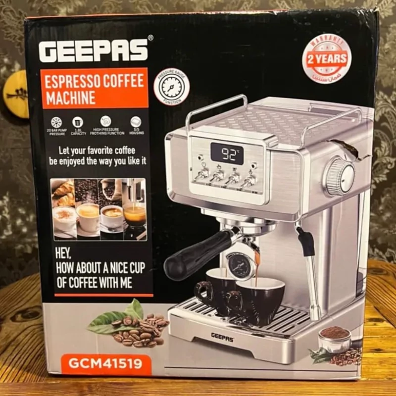 اسپرسوساز جیپاس مدل 41519 یک اسپرسوساز نیمه صنعتی با قیمت مقرون به صرفه است که به تازگی روانه بازار شده است. قیمت مقرون به صرفه و کیفیت فوق العاده از مشخصه های بارز این برند می باشد پمپ اولکا 20 بار، توان 1450 وات، پرتافیلتر سایز 58 و بسیاری ویژگی های دیگر که خرید این اسپرسوساز را در کنار قیمت بسیار مناسبش مقرون به صرفه میکند. مشخصات اسپرسوساز جیپاس مدل GCM41519 پمپ فشار قوی ULKA 20 بار. پوشش فولاد ضد زنگ کامل مخزن آب شفاف 1.8 لیتری قابل جدا شدن کنترل حجمی: برای یک فنجان و دو فنجان از پیش تنظیم شده است. سیستم گرمایش ترمو بلاک شیر ایمنی: می تواند فشار را به طور خودکار آزاد کند دارای فشار سنج مجهز به دبی سنج بدنه استیل ضد زنگ نازل فوم قابل جدا شدن و سینی چکه گیر برای تمیز کردن آسان. مجهز به عملکرد حفاظت از گرمای بیش از حد و فشار بیش از حد صفحه گرمکن فنجان استیل ضد زنگ بادوام برای گرم کردن فنجان دارای دو عدد بسکت صنعتی تک و دوبل دارای تمپر فلزی سنگین دارای پیمانه دفترچه راهنما و کارت گارانتی